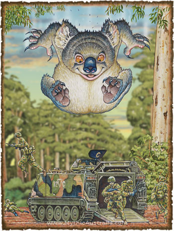 Ξέρεις τα drop bears? Είναι επικύνδινα κοάλα. Αυτά περιμένουν στα δένδρα και πέφτουν πάνο από οι τουρίστες!